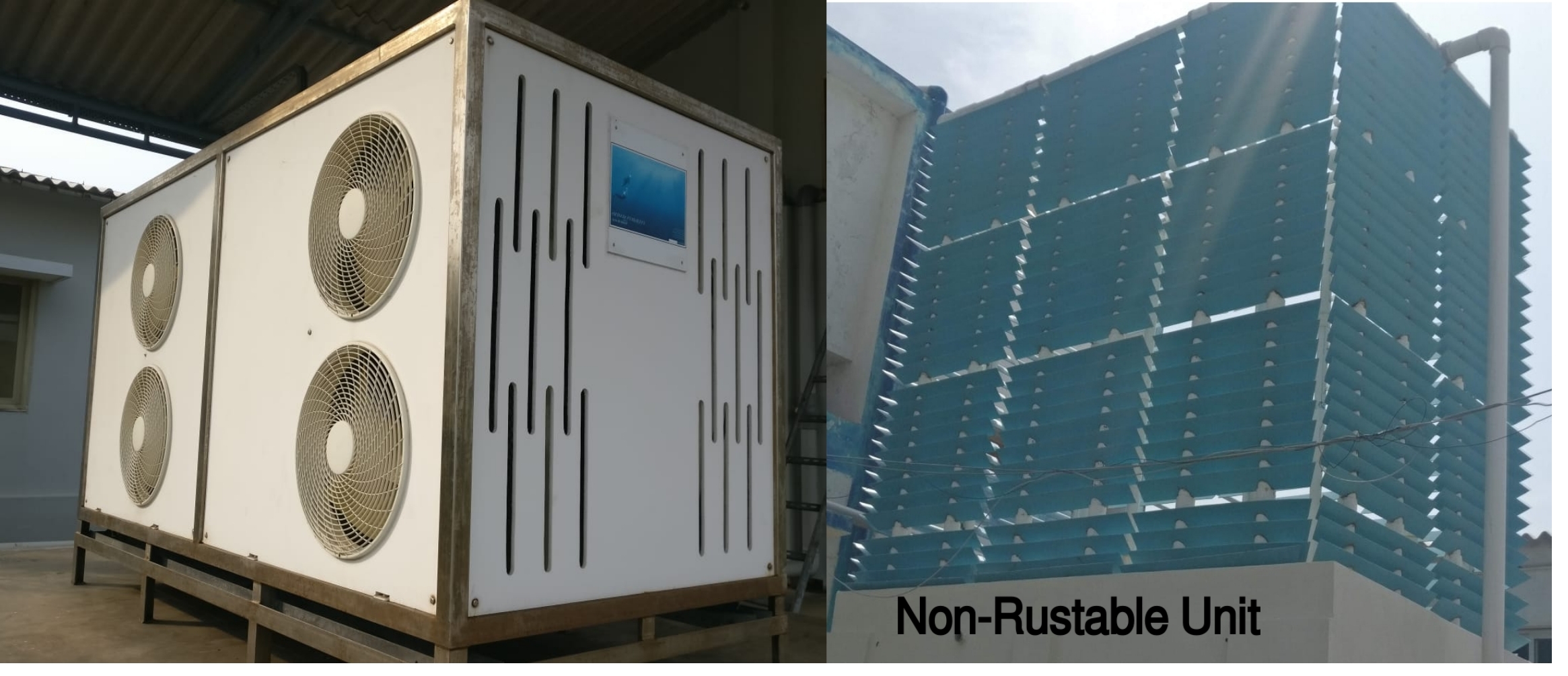 *Our unit are made of high grade SS and are power saver. *Our Cooling towers are made of UPV (Non-rust-able) and has no metal or moving parts. *They are Non-Corrosive (Non-rusting). *Sea water can be directly used in our cooling Tower.